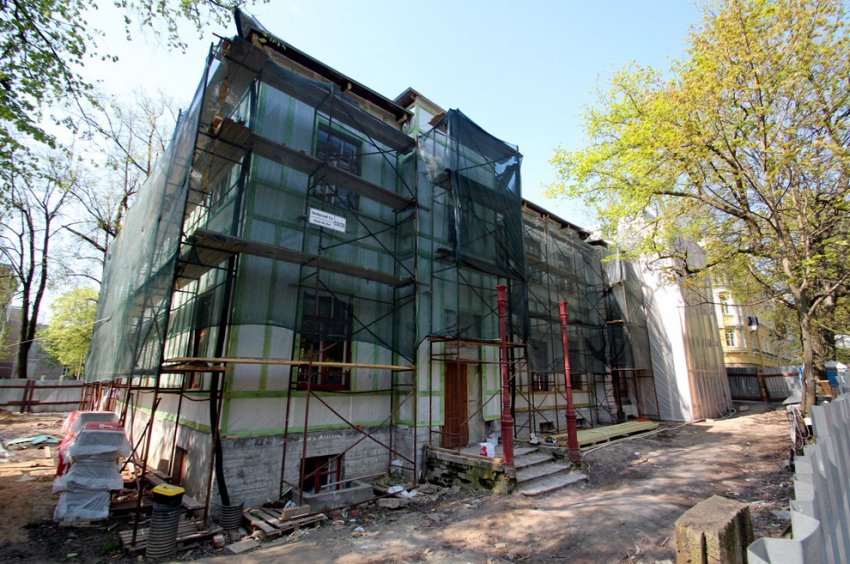 С лета 2011 года, по данным Росреестра, зданием владеет Сергей Ващенко. Активные работы начались в 2015-м. А сейчас с лесов на стены надевают пленку, которая, скорее всего, будет служить утеплением. Согласно баннеру, который висел на фасаде ранее, внутри должен расположиться «частный жилой дом».