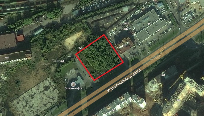 В конце апреля Смольный передал Церкви земельный участок между домами 8 и 12 по Кушелевской дороге, выходящий к проезжей части. Сейчас он покрыт зеленью, причем абсолютно весь. Инвестором выступил приход храма Сергия Радонежского, расположенного в поселке Песочном.