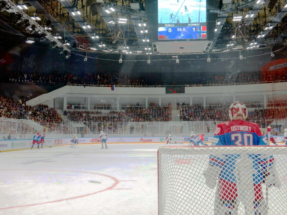 По большей части ремонт завершился. С начала года внутри успели провести ряд коммерческих мероприятий. А на днях на льду состоялись два товарищеских хоккейных матча. Они позволили убедиться, что арена готова будет в мае нынешнего года принять чемпионат мира по хоккею.