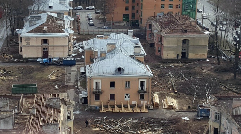 На проспекте Тореза, 71–79, приступили к сносу двухэтажных сталинских домов. На их месте «Строительный трест» намерен возвести 26-этажный «муравейник».
