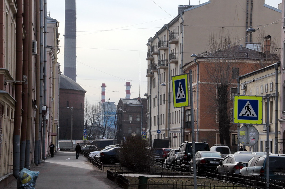 Затем ТГК-1 продолжила наносить урон архитектурному наследию Петербурга: газотурбинная электростанция вылезла в перспективе Подольской и Верейской улиц. Там теперь видна металлическая труба красно-белой расцветки, а также фрагмент основного серо-синего здания электростанции. Для южного берега Обводного канала зон регулирования застройки установлено не было, а потому просить уменьшить высоту трубы или сместить ее в сторону было бесполезным.