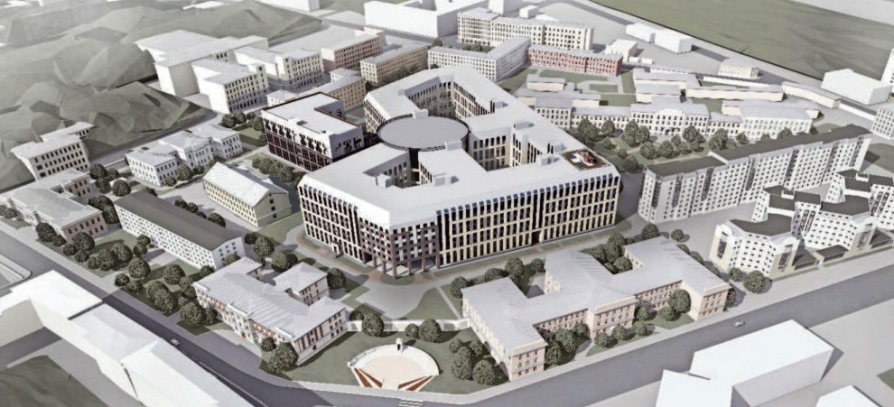 Завершена разработка фасадов многопрофильной клиники Военно-медицинской академии, которая строится на улице Доктора Короткова. Автор проекта Михаил Мамошин называет их «классическими».