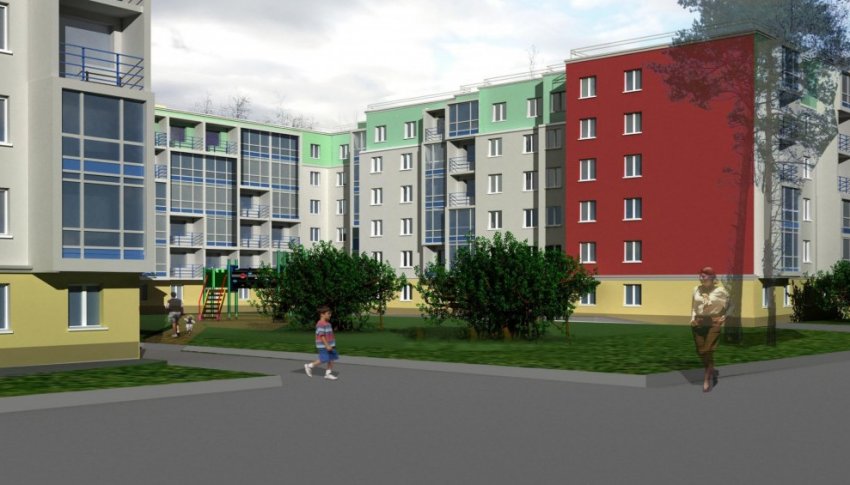 Проект предусматривает два корпуса: вдоль улицы Строителей расположится трехэтажный, за ним — шестиэтажный. Всего здесь предусмотрено почти 500 квартир. Кто автор проекта, неизвестно. Прежнюю версию в «стиле» хаотизм, отвергнутую, делало ООО «Архитектурная студия „ТСК-плюс“» Алексея Титова.