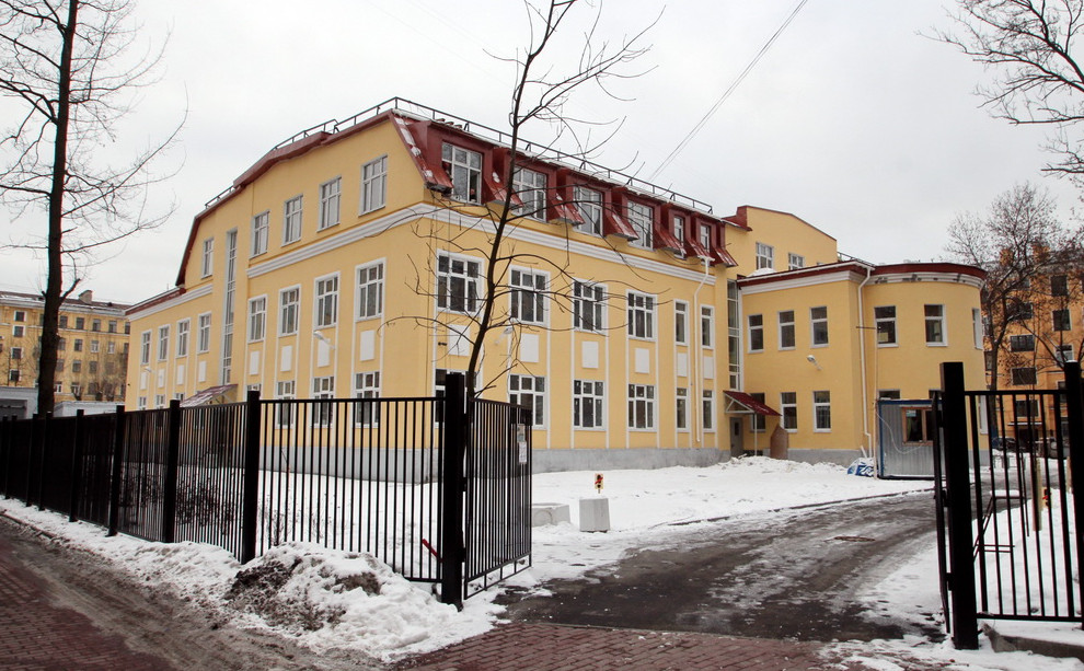 Во дворе дома 2 на Таврической улице завершили строительство детского сада. Его возвели на месте аналогичного конструктивистского здания, и в новом проекте от него «оставили» полукруглый эркер.