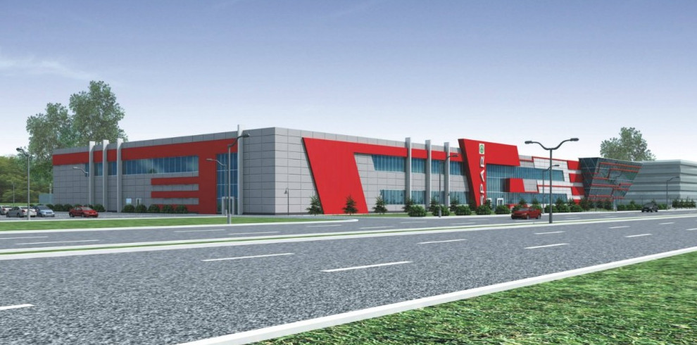 «Цветовое решение фасадов объекта выполнено в активной контрастной форме — сочетание красного и серого цвета, что создает яркий и запоминающийся образ», — так описывают свою задумку в мастерской. Сейчас возводится железобетонный каркас здания.