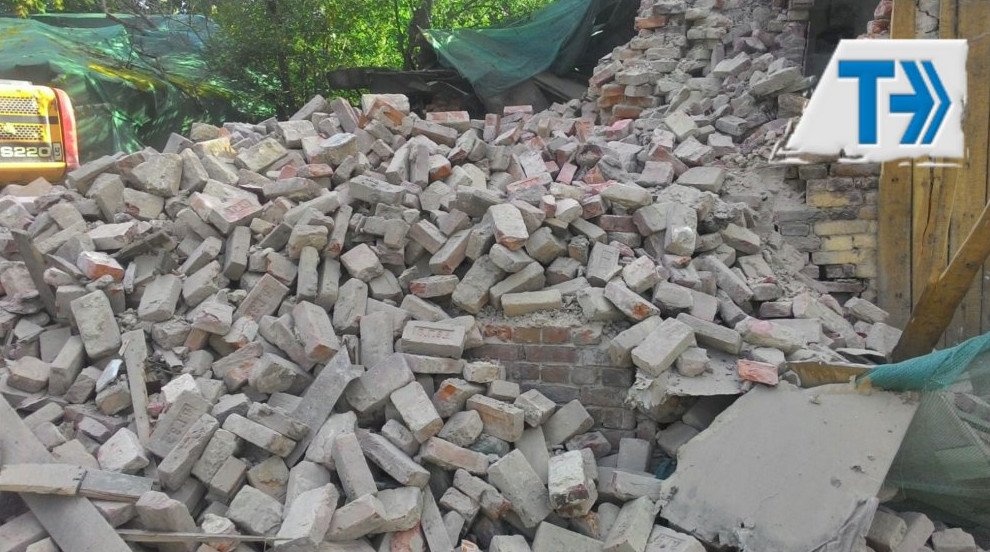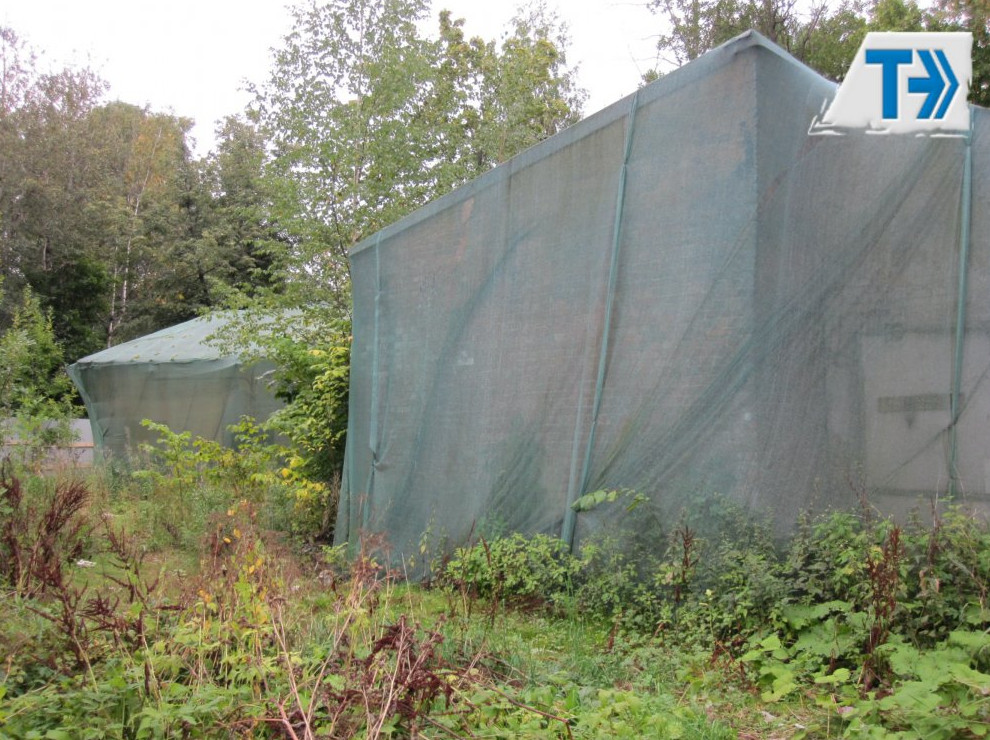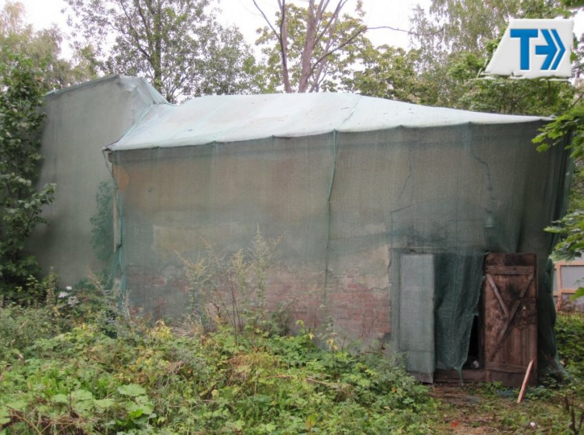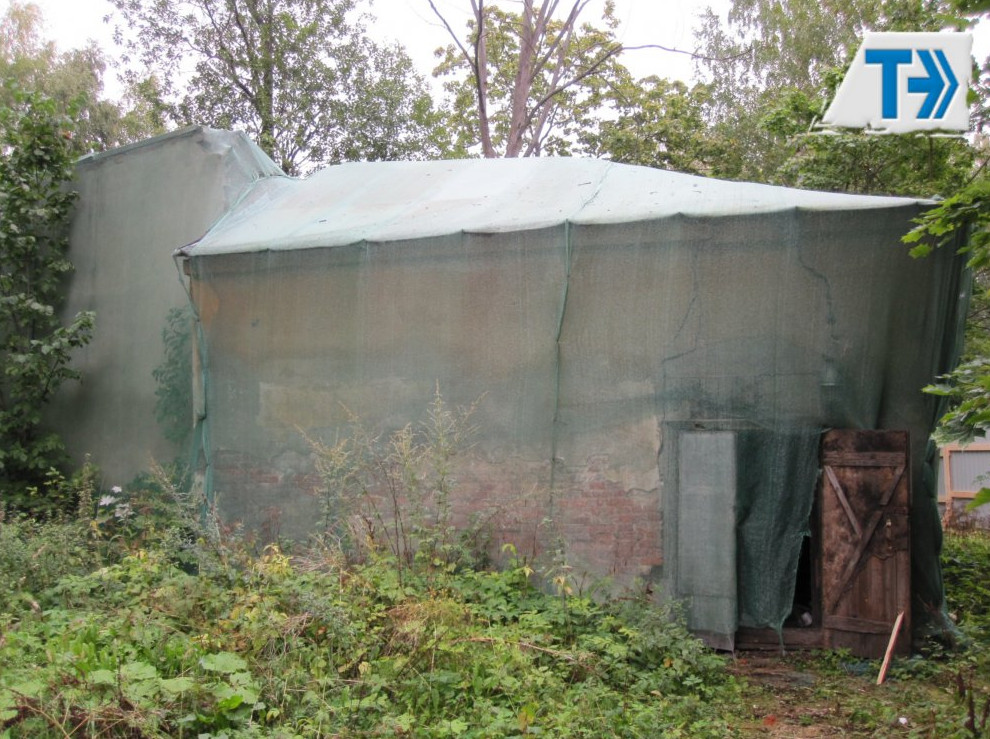 Участок расположен к северо-западу от особняка Руадзе на набережной Малой Невки, 33. Прежде на нем стояли четыре небольших постройки — склады и гараж. В октябре нынешнего года они были снесены демонтажной компанией ООО «Тэморт» как «диссонирующие». На фотографиях с места сноса можно разглядеть кирпичи с клеймами.
