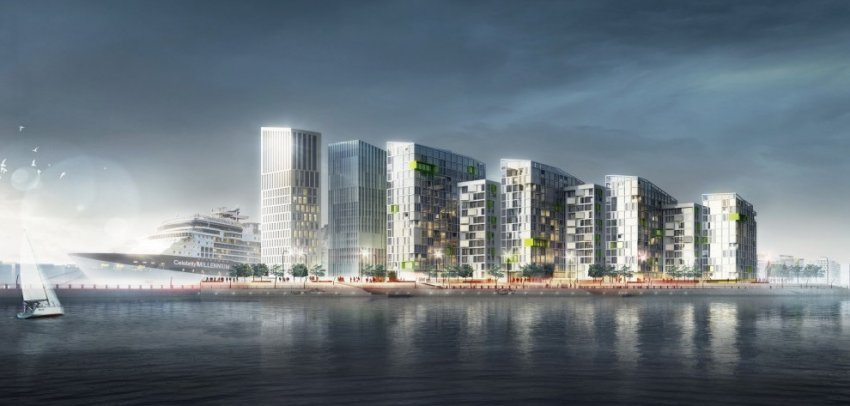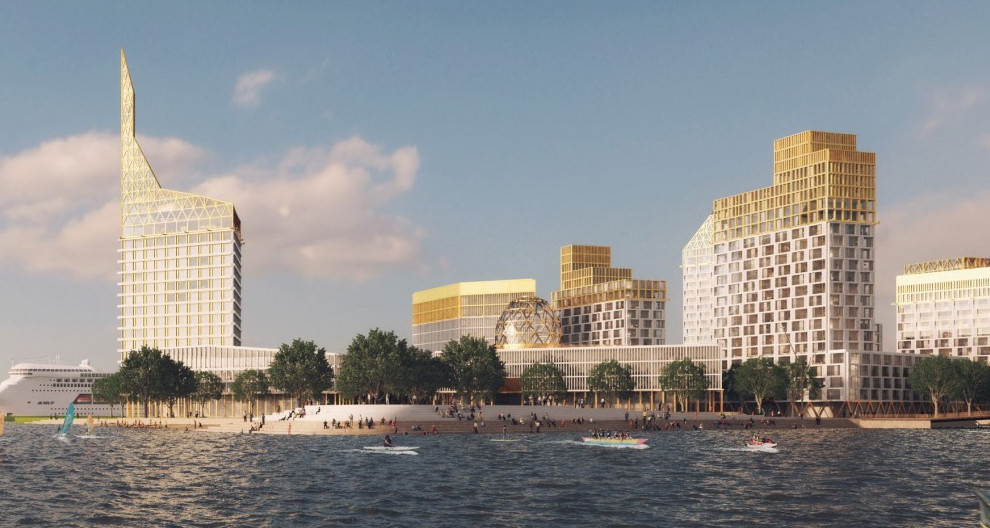 Летом 2015 года стало известно, что застраивать несколько участков вдоль пассажирского порта, то есть на лицевой стороне намыва, будет Glorax Group. Гендиректор входящего в группу ООО «Глоракс девелопмент» Алексей Балыкин заявил, что место очень важное и ответственное, а потому необходимо провести конкурс концепций. На днях их представили.