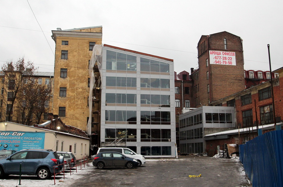 Брандмауэр чулочной фабрики на Красного Курсанта незаконно стал стеклянным - «Свежие новости строительства»