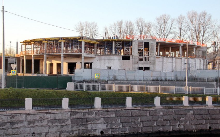 Под офисное здание отвели участок на южной набережной Обводного канала восточнее Американских мостов. Не первый месяц там растет дом с полукруглым фасадом, обращенным на воду.