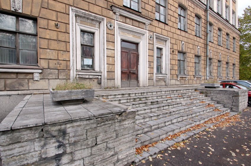 Четырехэтажное здание в Подъездном переулке, 12, было построено в 1952 году по типовому проекту в сталинской архитектуре. Главным фасадом оно обращено на бульвар улицы Марата. Внутри была школа, а затем Институт программных средств.
