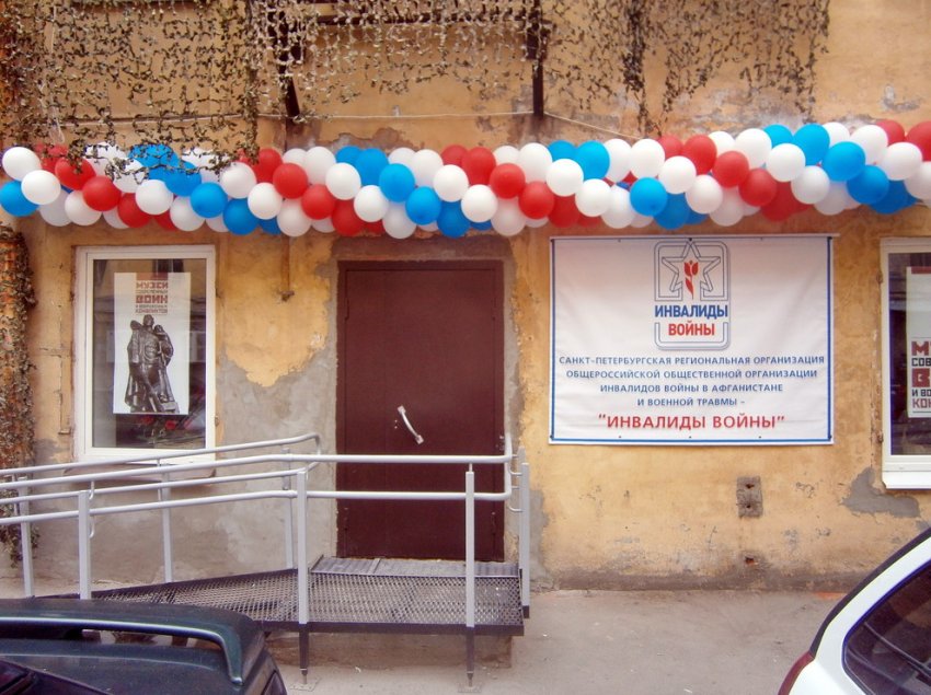 Флигель на Старо-Петергофском, 54, литера В, был построен, скорее всего, до революции одноэтажным. Затем, в 1960-х, появился еще один, а внутри разместилась прачечная, а в 1993-м сделали третий этаж. Осенью 2013 года его передали общественной организации афганцев «Инвалиды войны». Недавно очевидцы заметили, что здание начали обживать: при входе появилась табличка, а на окне — баннер «Музей современных войн и вооруженных конфликтов».