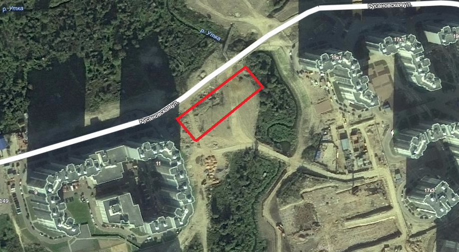Земельный участок, сформированный под спорткомплекс, выходит на красную линию Русановской улицы между рекой Уткой и домом 11. Он небольшой (площадь 2,6 тыс. кв. метров) и вытянутый.