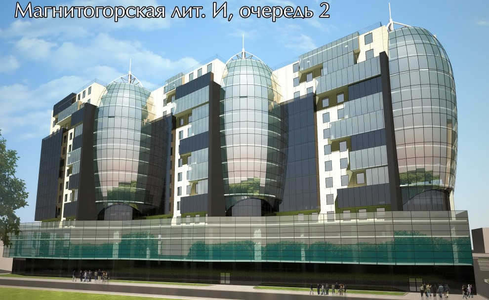Проектируемое здание на Охте считается его второй очередью. Лицевым фасадом оно выйдет на береговую полосу реки. Будет ли там набережная или просто благоустроенный берег, неясно — проекта планировки нет. В новостройке будет 14 этажей, не считая подвала. Как видно на проектной иллюстрации, первые этажи оформят в виде массивного стеклянного цоколя. На верхних уровнях железобетонного дома выделят три выпуклых стеклянных объема, напоминающих авиационные бомбы. Они будут обращены к Охте.