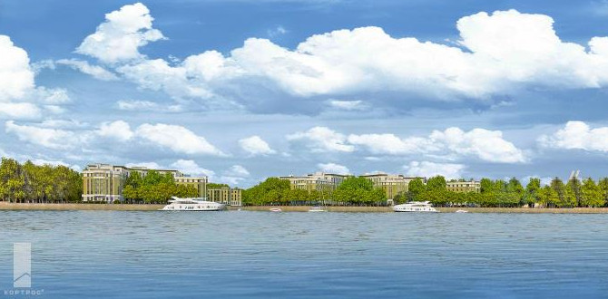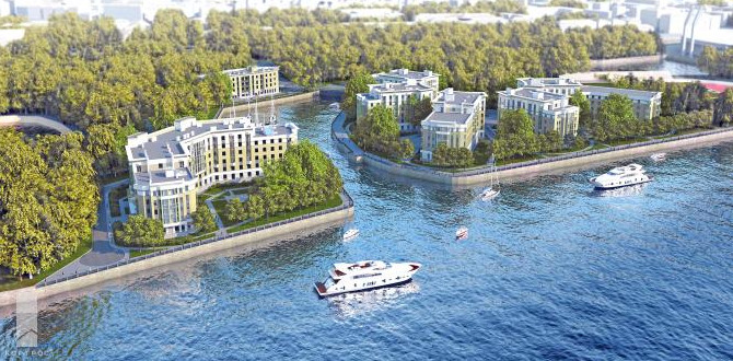 Об апарт-комплексе, включающем в себя жилые корпуса, паркинг и яхт-клуб, стало известно в 2013 году. Под него отвели два участка, разделенные безымянным протоком, — на Петровском проспекте, 2. По сути, оба надела расположены на двух разных островах: один на Петровском, другой на безымянном (на последнем также располагается малая арена стадиона «Петровский»).