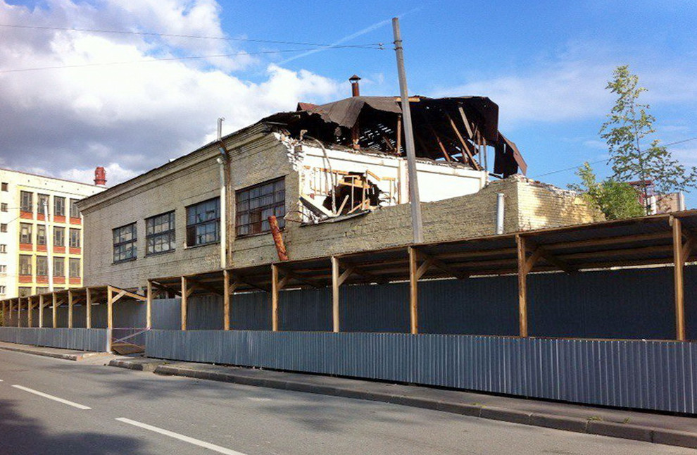 Сейчас ведется снос расположенного там двухэтажного корпуса завода имени Калинина, построенном в 1933 году как фабрика-кухня. В ГАТИ пояснили, что ЛенспецСМУ начало работы без предупреждения, самовольно установив забор. В июле в отношении компании возбуждено административное дело.