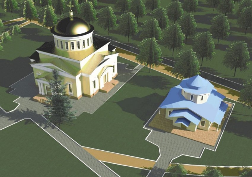 Исторически прямо на кладбище стоял деревянный храм Пресвятой Богородицы. В советские годы он сгорел и был разобран. Сейчас на его месте захоронения. Поэтому построить новую церковь в составе православного центра планируют южнее, примерно в 200 метрах от прежнего места.