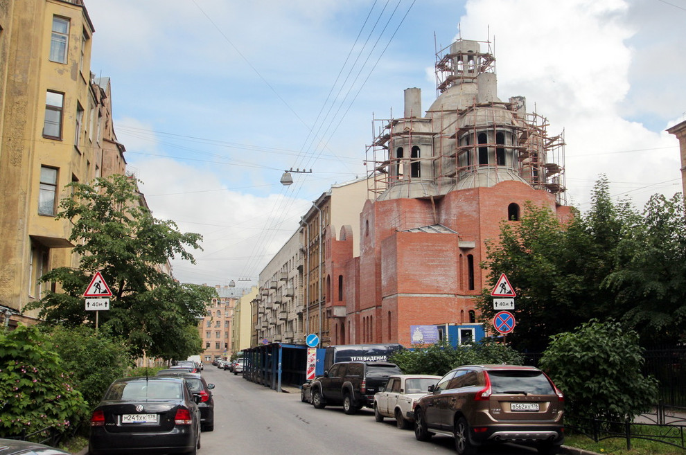 Церковь Ксении Блаженной на Лахтинской улице, 17, планируется ввести в эксплуатацию в 2016 году. Храм в строчной застройке возводится пять лет.