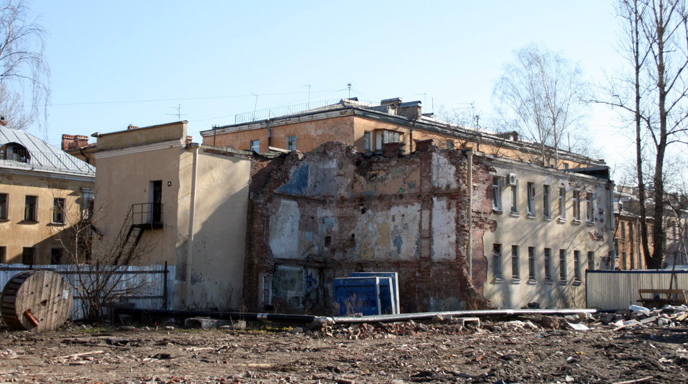 Дореволюционный дом на улице Малыгина, 8, могут снести. Он стал разрушаться в результате строительства жилого комплекса «Охта-модерн».