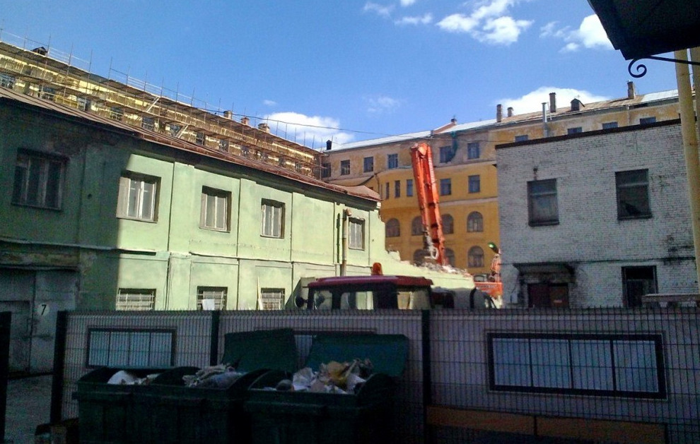 Во дворе здания Главного кригс-комиссариата на улице Глинки, 2, сносят двухэтажное здание. Разрешение на строительство там нового объекта не выдавалось.