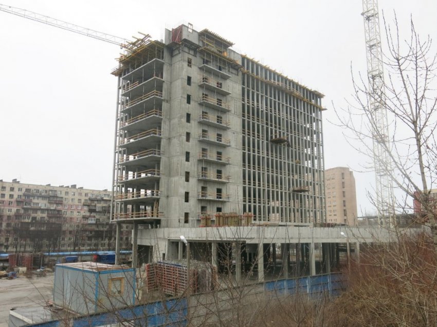 На углу улиц Маршала Тухачевского и Львовской возводят 14-этажный бизнес-центр. Возможно, ранее это место было частью нынешнего Полюстровского парка.
