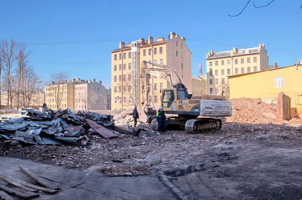 Демонтаж ведет ООО «Демонтажстройинжиниринг», входящее в группу «Крашмаш». Там пояснили, что окончание разборки запланировано на май 2015 года. На самом же деле дом на Расстанной снесли месяц назад, а от здания на Прилукской остались незначительные фрагменты.