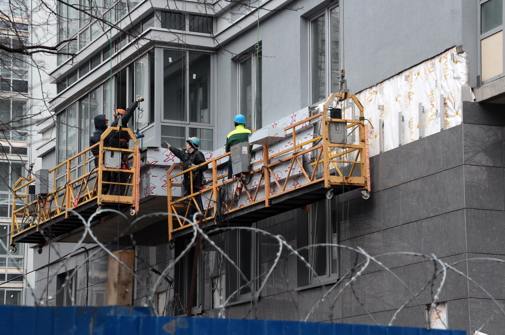 Несмотря на акт о вводе, здание не доделано. В частности, сегодня там продолжались отделочные работы на фасаде.