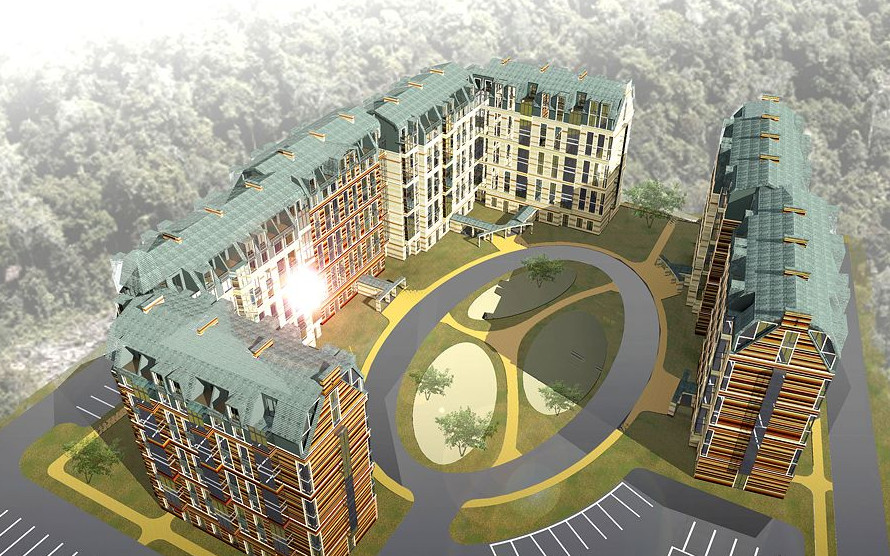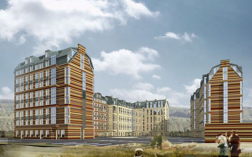Первую очередь — жилой комплекс из семи домов — появится на участке площадью 1,4 гектара (он расположен восточнее «Константиновского»). Здания будут с двускатными крышами и полосатыми фасадами, поставленных вокруг большого двора. Кто делал проект, неизвестно. По данным «Канонера», в ближайшее время намечены установка ограждения площадки и вырубка деревьев.