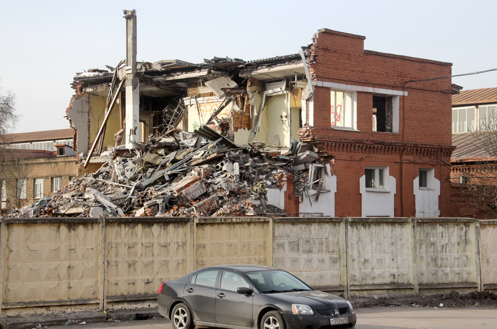 Официальный представитель «Размаха» сегодня сообщил «Канонеру», что в настоящее время продолжить снос здания невозможно, «поскольку по его территории проходят локальные инженерные сети». Сейчас нельзя сказать, когда демонтаж продолжится, добавил наш собеседник.
