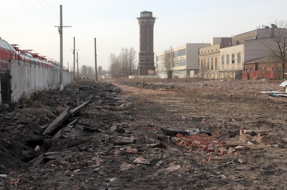 Снос малярной мастерской Варшавского вокзала, начавшийся год назад, будет завершен. Работы оказались прерваны из-за инженерных сетей на участке.