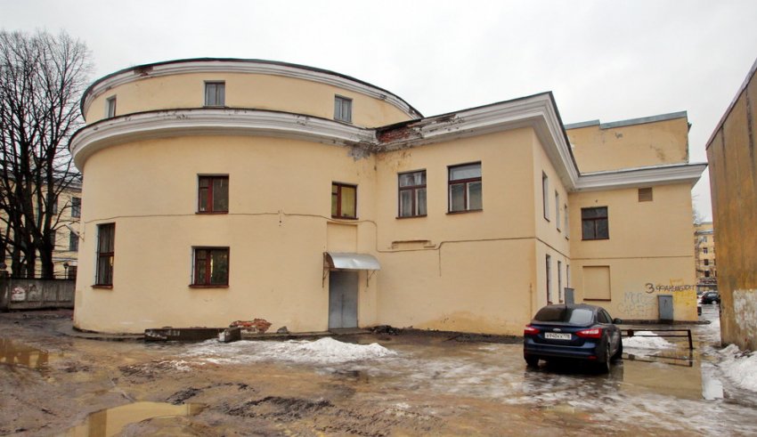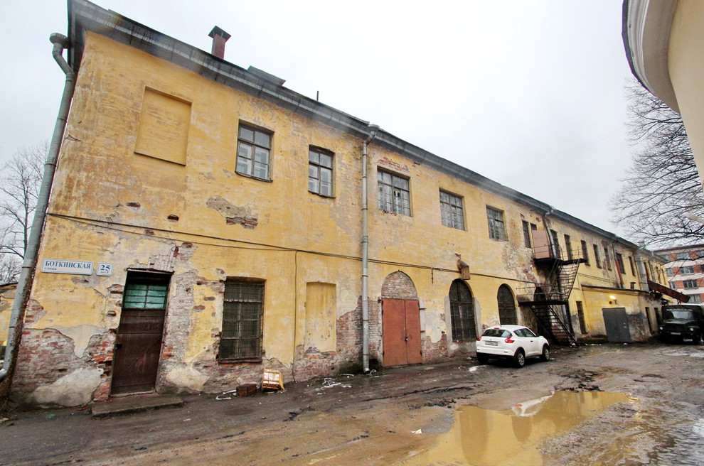 Здание имеет адрес: Боткинская улица, 25, литера Л. Оно расположено за домом 12 по улице Комиссара Смирнова. Скорее всего, южная полукруглая часть постройки дореволюционная, а северная — начала 1960-х.