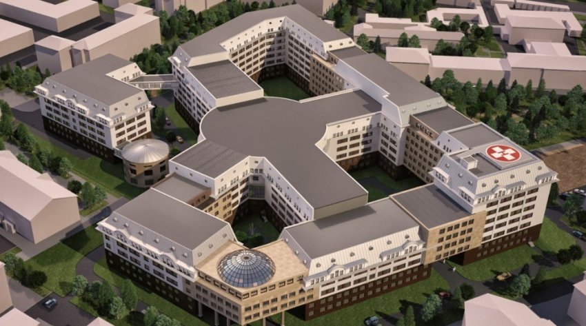 Новый корпус, в котором разместится многопрофильная клиника, появится на месте четырех зданий — 25, литеры В, Е и Л, а также 19–21 по Боткинской улице. Высота составит около 30 метров (девять этажей). Таким образом, сооружение будет видно с площади Военных Медиков. Фасады решены с использованием приема фрагментизм.