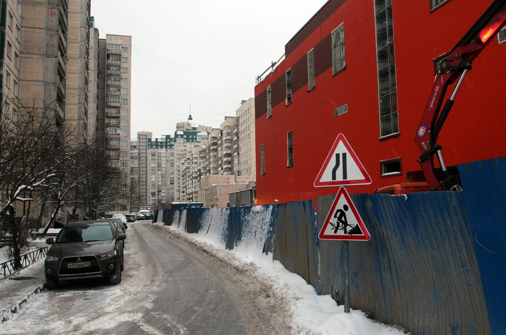 На проспекте Косыгина, 31, ввели в эксплуатацию торгово-развлекательный комплекс. При его строительстве обвалился грунт, и в котлован скатились припаркованные машины жителей.