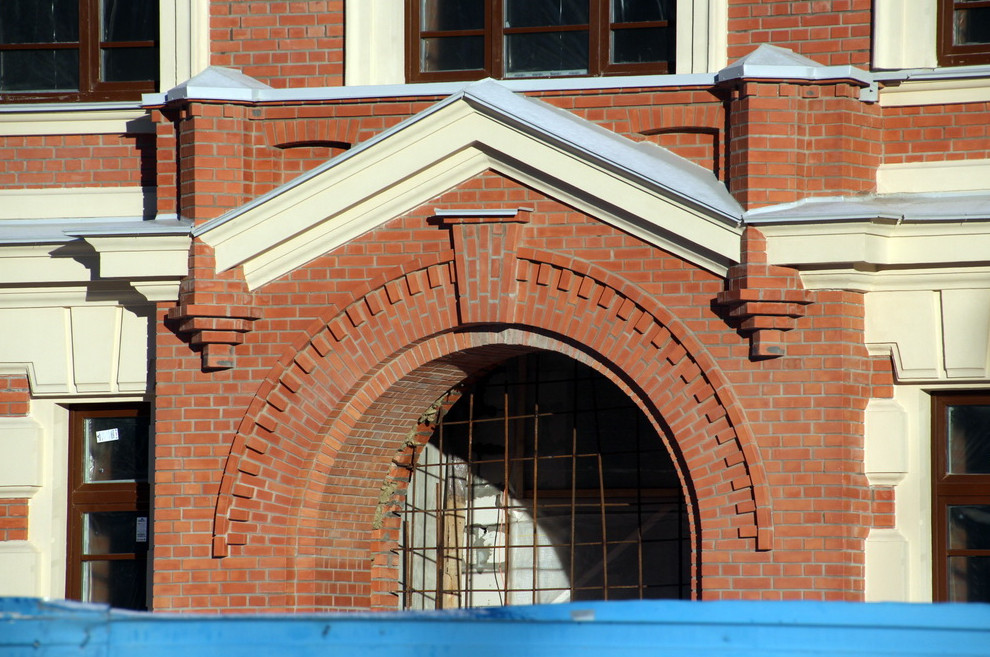 Требование о восстановлении училища выдал комитет по охране памятников. Но разрешил он это сделать не на прежнем месте, а рядом, ближе к Рыбацкому проспекту. Это позволило увеличить площадь жилой застройки. Кроме того, форма дома в плане стала другой — вместо Г-образного здания спроектировали параллелепипед, что в полтора раза меньше оригинала.
