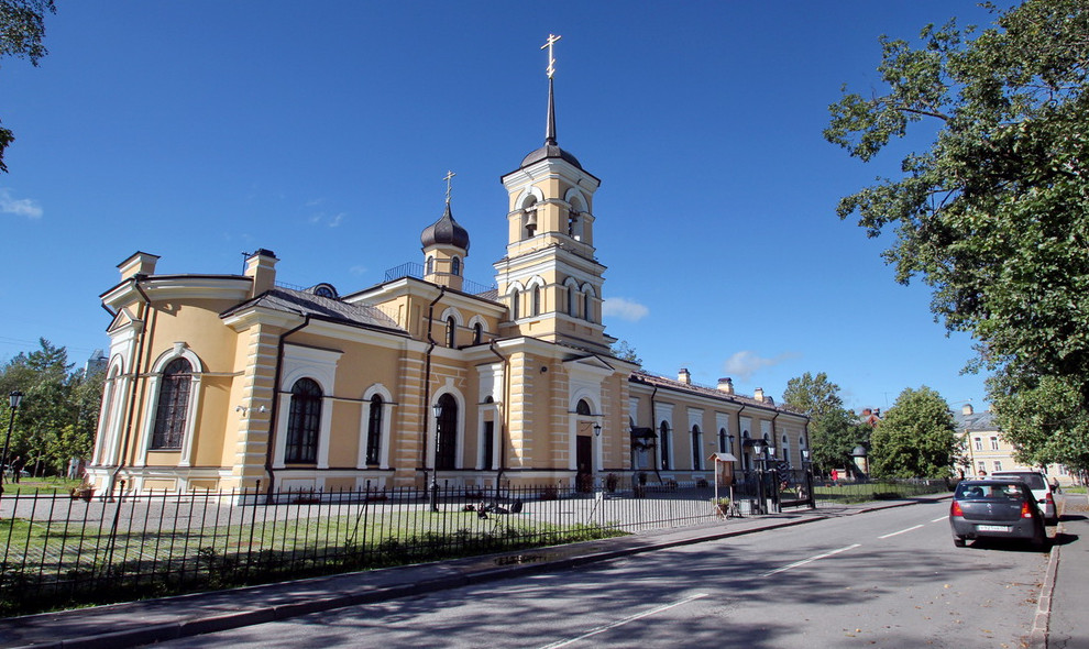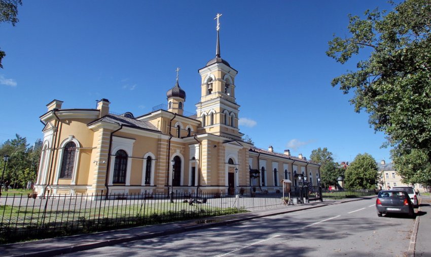 Здание церкви на углу Фуражного переулка и Красносельского шоссе было возведено в 1887–1889 годах по проекту военного инженера Коляновского. В годы войны от храма остался остов без перекрытий и крыши, а в 1980 году постройку реконструировали под автошколу. Тогда был надстроен второй этаж.