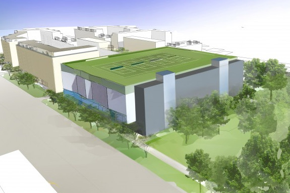 В качестве компенсации за утрату рекреационной зоны небольшой фрагмент был отведет под спортивные нужды. Прежде на этом месте, выходящем на проспект Медиков, находился теннисный корт. Заказчиком спортцентра выступает, однако, не NCC, а холдинговая компания «Петромир».