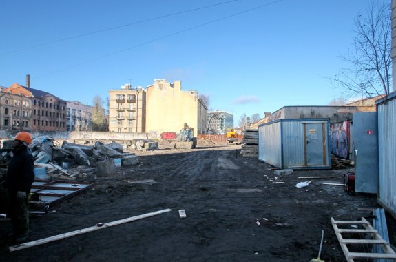 Между тем на днях работы на участке возобновились. Как стало известно «Канонеру», в ближайшее время по заказу департамента строительства Минобороны начнется строительство общежития на 800 мест для Военно-космической академии имени Можайского. Несмотря на то что генподрядчиком числится ОАО «Главное управление обустройства войск», реально работы проведет ОАО «Генеральная строительная корпорация».
