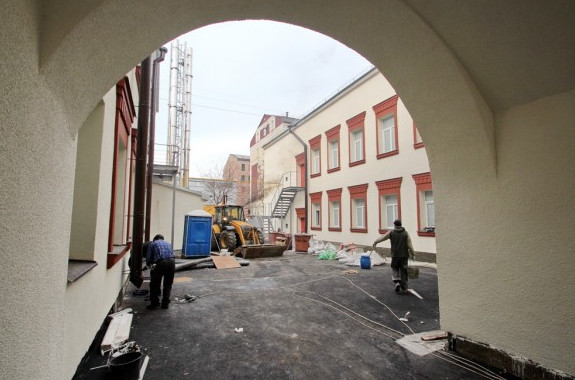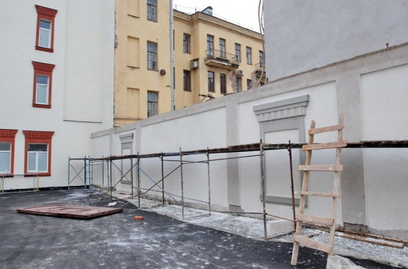 В 2013 году по заказу собственника ЗАО «ФУГУ» началась реконструкция. Первым делом подрядчик ООО «Спрингалд» (входит в группу Springald) частично разобрал дворовый флигель, чтобы на его месте организовать парковку. Это был единственный снос.