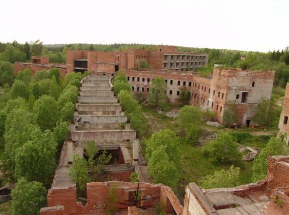 Недостроенное здание сложной формы стояло на Колхозной улице, 4, на противоположном от Пенатов берегу безымянного ручья. Его начинали сооружать незадолго до распада Советского Союза. После перестройки работы были брошены. Много лет там стояли башенные краны, лежали стройматериалы. По воспоминаниям солнечнинцев, все они были растащены садоводами. В начале 2000-х краны упали, затем и их увезли как металлолом.