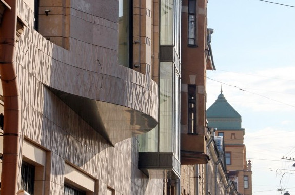 На Малом проспекте Васильевского острова, 9, завершилось строительство жилого дома. Его главный акцент — эркер, выполненный в виде сгиба бумаги.