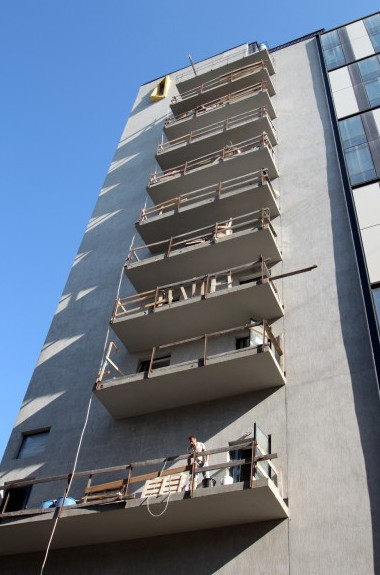 На днях «Строительное управление № 308 — девелопмент» получило разрешение на ввод «гостиничного комплекса» в эксплуатацию. Ему присвоен адрес: Московский проспект, 73, корпус 3. Однако здание полностью недостроено, в чем сегодня убедился корреспондент «Карповки». В частности, на балконах отсутствует ограждение, во многих местах отсутствуют панели вентилируемого фасада.
