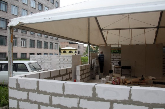 Павильон из пенобетона строят сейчас на улице Ивана Черных у дома 10. Есть основания полагать, что работы ведутся незаконно.