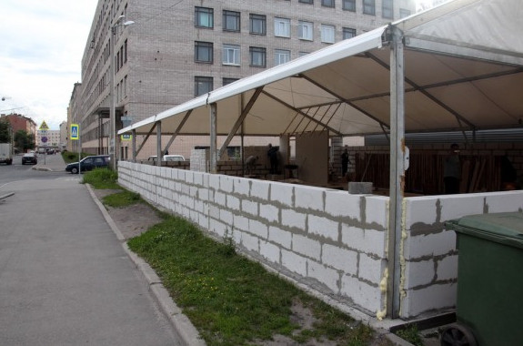 Если верить региональной геоинформационной системе Смольного, новостройка выходит за границы земельного участка: его восточная половина попадает на городскую территорию. Сведений о выданном разрешении на строительство павильона на сайте службы строительного надзора обнаружить не удалось. При этом рабочие, завидев фотографа «Карповки», почему-то засуетились и убежали в основное здание.