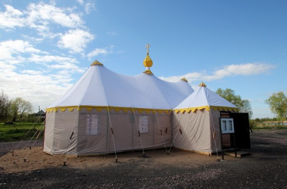 В городе Колпино между улицей Анисимова и рекой Ижорой может быть построен новый храм — Сошествия Святого Духа. Пока там поставлена церковь-палатка.