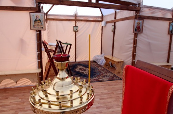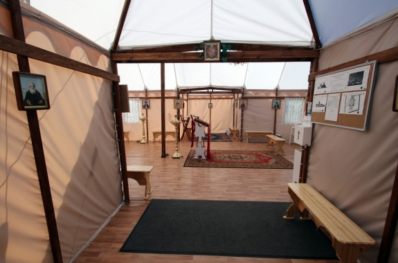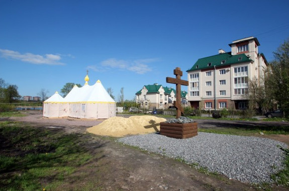 Под будущий храм отдали пустырь южнее дома 5, корпус 7, по улице Анисимова, рассказал «Карповке» глава администрации Колпинского района Дмитрий Кобицкий. В феврале там состоялось торжественное освящение поклонного креста. А сейчас позади него выросла церковь-палатка с одной главкой, открытая для всех верующих.