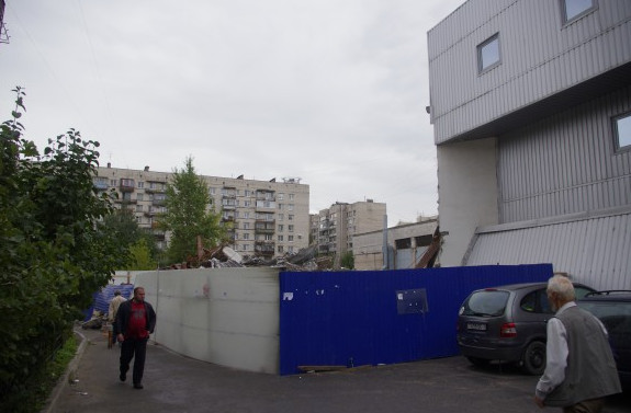 Снос незаконного ТЦ, построенного слева от метро «Приморская», приостановлен. Собственник пытается обрести законность постройки через суд, однако в КУГИ сомневаются в успехе данного предприятия.