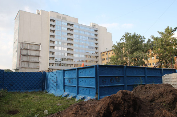 В мае минувшего года силами «АН „Мансарды Петербурга“» около бывшего общежития были вырублены деревья. Как тогда сообщили «Карповке» в комитете по благоустройству, вырубка велась законно, было предусмотрено компенсационное озеленение по окончанию работ.