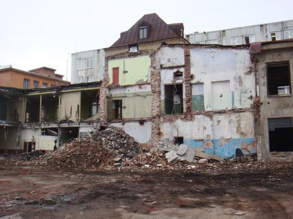 Сейчас снос осуществляет ООО «Спрингалд», входящее в группу Springald. Как видно на фотографиях, уже полносью разрушен дворовый объем, который представлял собой фрагмент дореволюционной постройки. Тем не менее вице-президент Springald Виталий Никифоровский сегодня признался «Карповке», что другие старинные корпуса сохранят — это предусмотрено проектом бизнес-центра. Демонтажные работы, по его словам, практически завершены — уйти с площадки сотрудники «Спрингалда» намерены в первой декаде августа.