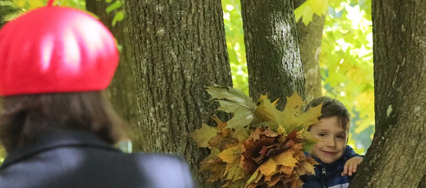 Минчане гуляют по дорожкам с детьми и домашними питомцами, малыши собирают красивые листья, а взрослые пытаются запечатлеть краски осени на холсте.