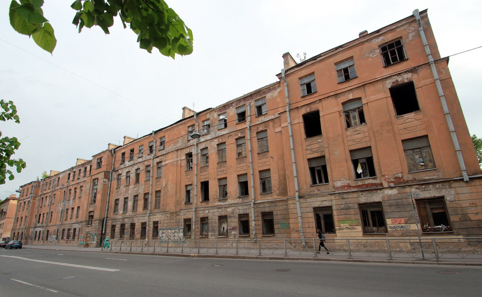 Четырехэтажное здание было построено в 1909 году по проекту архитектора Ивана Балбашевского. В нем разместилась казарма 1-го железнодорожного батальона. Военнослужащие продолжали жить здесь и в российское время. В 2013 году в доме произошел крупный пожар, после чего его расселили. С тех пор объект стоял заброшенным.