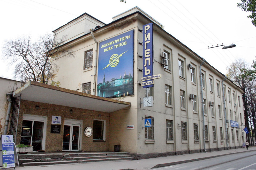 Завод «Ригель» занимает почти 5 гектаров между улицей Профессора Попова, Иоанновским монастырем, рекой Карповкой и створом улицы Грота. Там присутствуют как советские, так и дореволюционные постройки. Одно из старинных зданий — под литерой И — в 2015 году надстроили дополнительным этажом по заказу ОАО «Аккумуляторная компания „Ригель“».